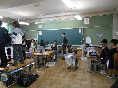 また,理科では閉じ込めた空気の感覚を体感しています。
