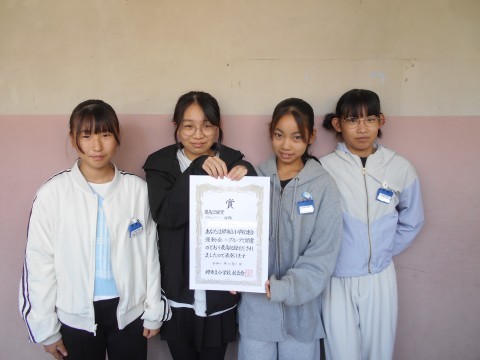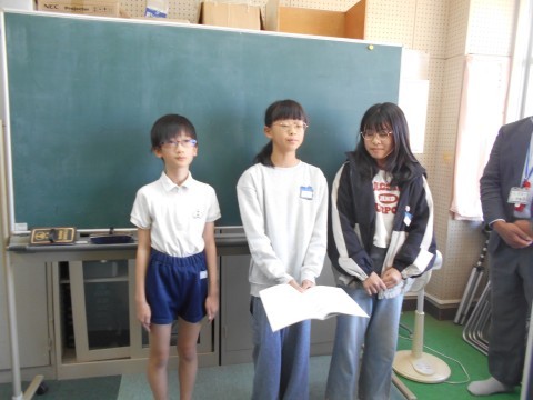 今週木曜に実施される津波避難訓練の説明があった後、児童会からはあいさつ運動のふりかえり、表彰では連合運動会の受賞者を代表して女子リレーメンバーが表彰を受けました。