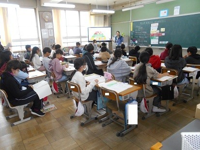 家庭科では,家庭科と栄養教諭の先生が授業をしてくださっています。