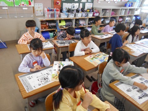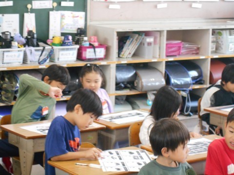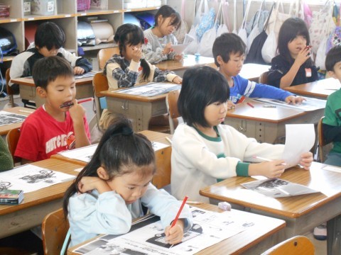 1年1組では自分の興味のある車について「しごと」と「つくり」を調べました。