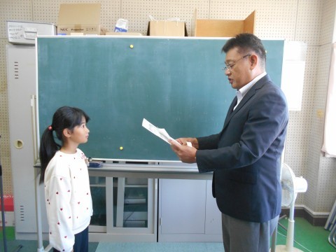 今朝の朝礼は、校長先生と生徒指導からのお話の後、はとぶえコンクールの表彰がありました。