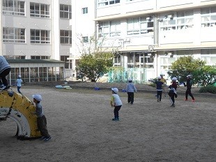 上着を脱いで遊ぶ子もいます。脱いだ上着は忘れないようにしようね。