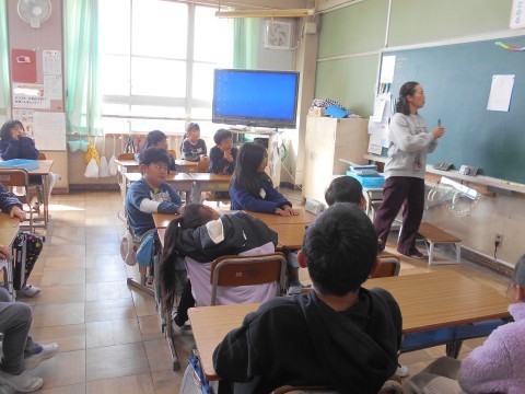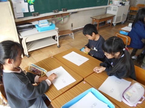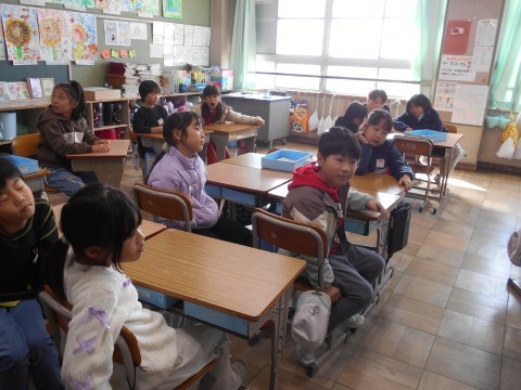渡されたプリントには、乾電池と豆電球のみ。どうつないだら明かりが点くのか。