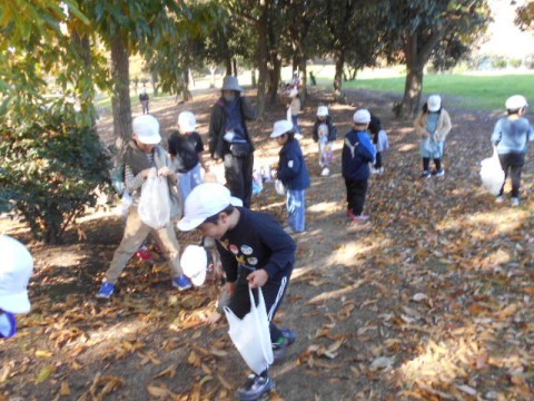 1年2組は3時間目に大仙公園へ行って、秋みつけをしました。