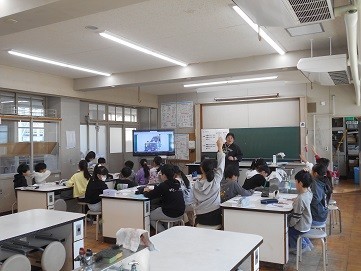 体育では体育館でボールを使った学習,理科は理科室での学習です。