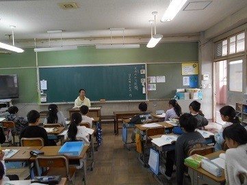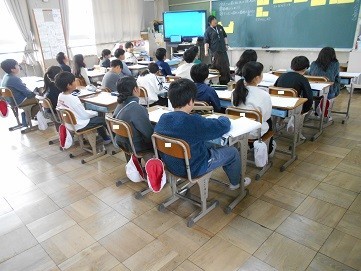 算数では,面積の学習をしています。自分の考え方を黒板の前に出て説明しています。
