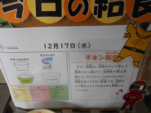 チキン南蛮は鶏肉のから揚げです。給食のチキン南蛮は,甘酢で味わうさっぱりとしたものになっています。