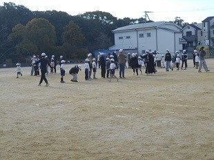 6年生は1年生にやさしく跳び方を教えてあげています。