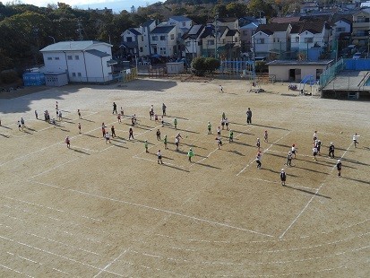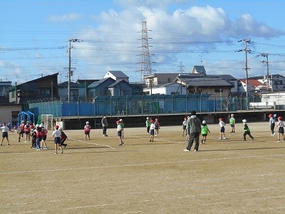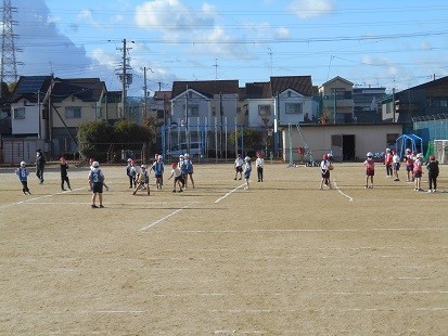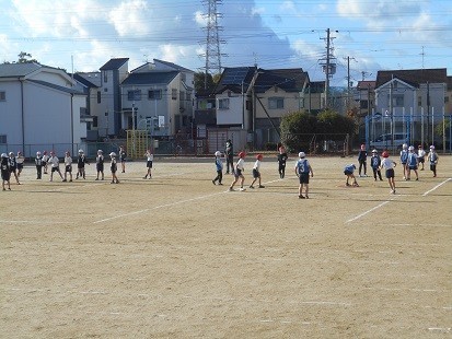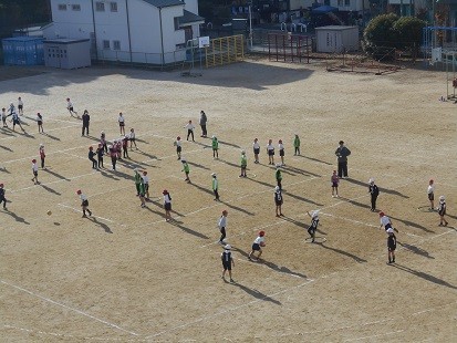 2クラスでボールゲームをしています。よく動きましたね。