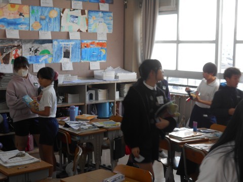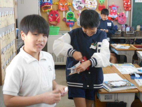 5年2組は社会の学習。何やら教室をウロウロしながら話をしています。