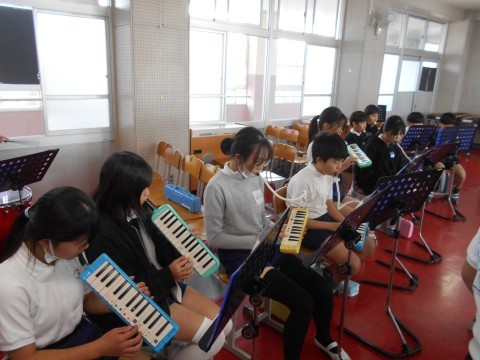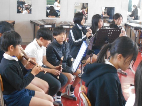 体育の後だったのでしょう。6年2組は音楽の時間でした。