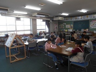 落ち着いた雰囲気で読書をしています。冬休みは,少し長めの本に挑戦してみようね!
