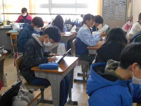 こちらは6年1組。ちょっとすき間の時間ができたようです。