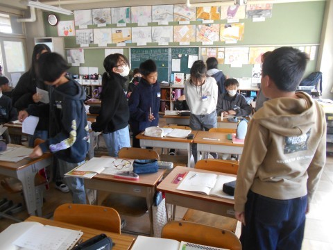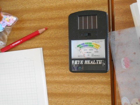 今日は6年3組の家庭科で、その照度について学び、実際に計測していました。