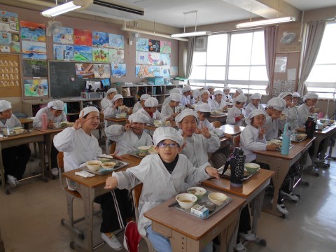 給食の様子です。おいしい!!!