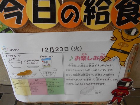 さて,2学期の給食は,今日で最後となります。給食に関わる,全ての方々に感謝の気持ちを込めていただくようにしましょうね!