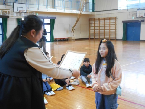 校長・教頭・音楽専科・各担任・そして保護者と、各部門の受賞者が表彰されました。
