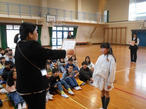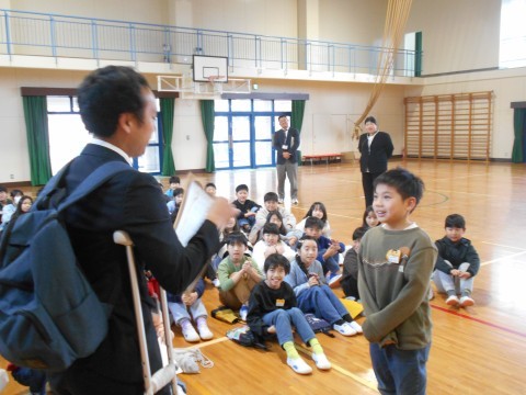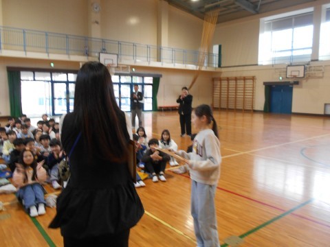 終業式も終わり、4年生だけが体育館に残りました。
