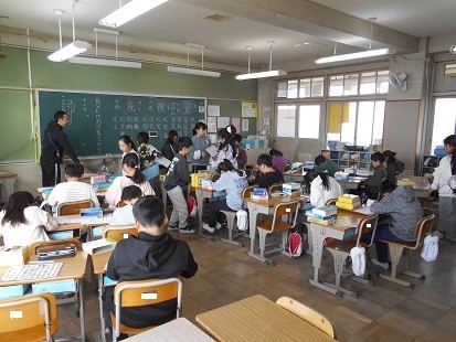 音楽では,曲を聴いて,どのように感じたのか発表をしています。