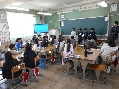 学活では,子どもたちが前に出て,司会をして決めごとをしています。