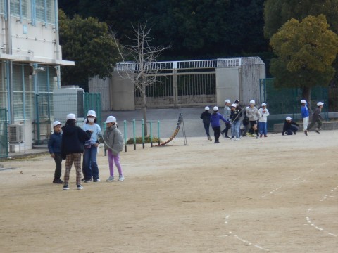 子どもたちは,長縄をしたり,鬼ごっこをしたりしています。