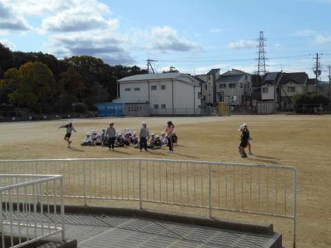 1年生の外の体育です。縄跳び運動をしています。