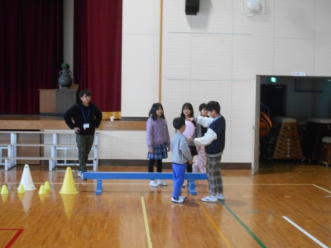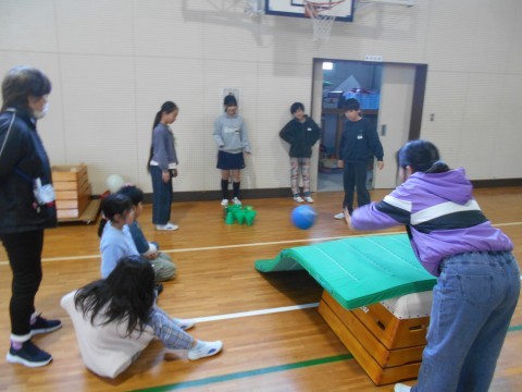 体育館には5年生がセッティングした遊びが用意されており、みどり学級のお友だちと楽しく遊びました。