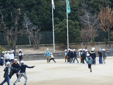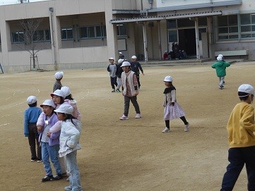 運動場では,ボール遊び,長縄,鬼ごっこをして遊んでいます。