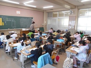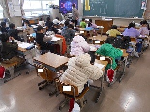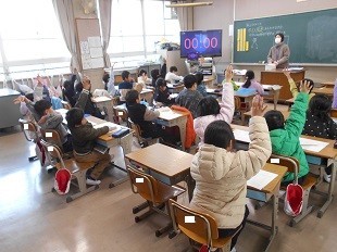(二桁)+(一桁)の計算の仕方を学習しています。たくさん手が挙がっています!