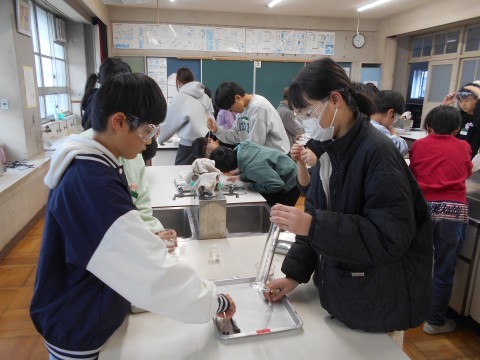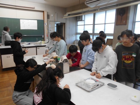 実験用のメガネもかけると、気持ちももう一段階上がりますね。