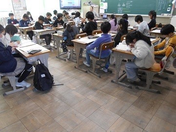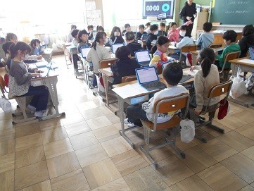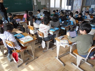 社会科では,新しいタブレットを使って,社会の調べ学習をしています。