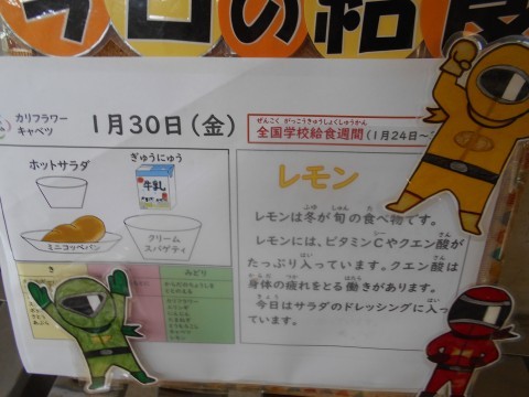 レモンは冬が旬です。レモンには,ビタミンCやクエン酸がたっぷり入っています。クエン酸は体の疲れをとる作用があります。