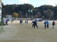 外で長縄の練習をしています。