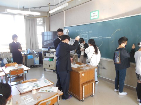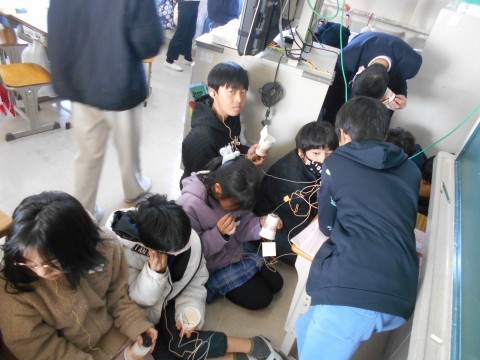 壁に向かって、黒板に向かって。電波を拾おうとしているのは5年生。