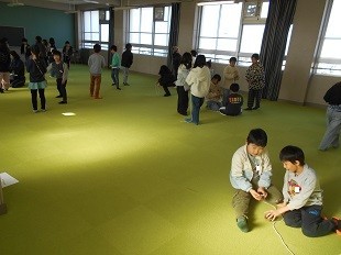 生活科では,こま回しをしています。ずいぶん,こまを上手に回すことができる子どもが増えてきました。