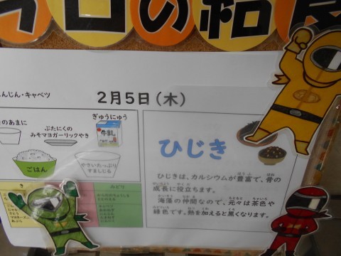 ひじきはカルシウムが豊富な海藻です。骨の成長に役立ちます。熱を加えて調理すると黒くなりますが,もともとは海藻らしい緑色や茶色です。