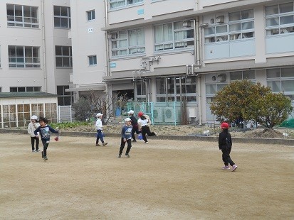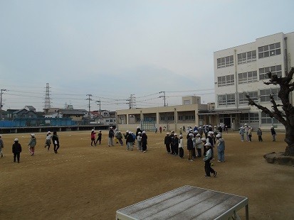 5時間目に「大なわ大会」があるので,たくさんの子どもたちが,大なわの練習をしています。