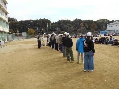 ペア学年のチームで,限られた時間のなかで,何回跳ぶことができるかを数えます。