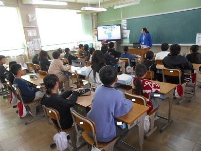 給食の先生から,「カルシウム」の話をしていただきました。今,成長期のみなさんは,カルシウムを体に貯める時期です。