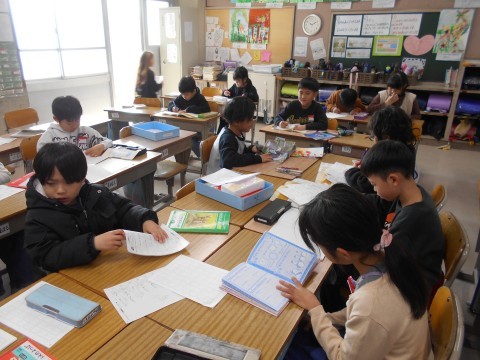 10回とは言いませんが、2年2組のみんなも同じように書いて復習していました。手が黒くなるまで、がんばってます!