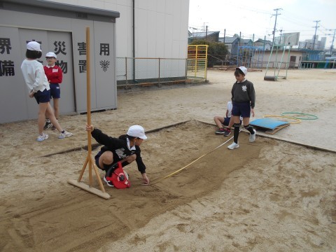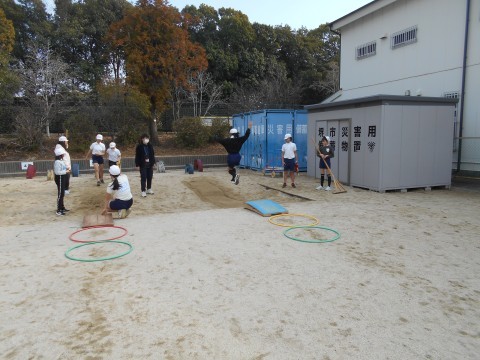 5年生の外体育は、走り幅跳びをしています。