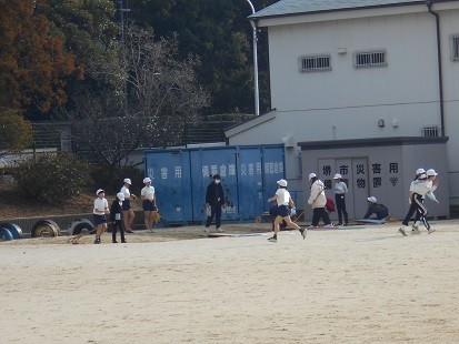 走り幅跳び,縄跳び運動をしているところです。