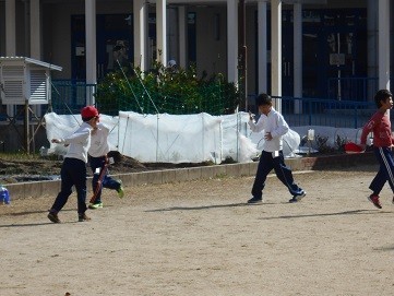鬼ごっこをしています!しっかりと手を洗って教室に入りましょうね!