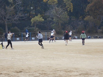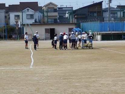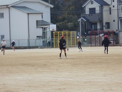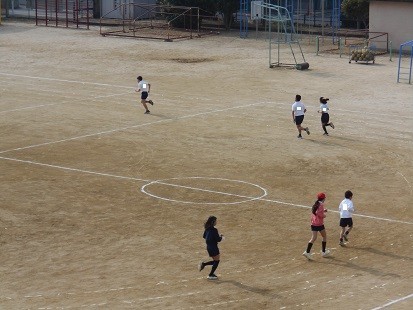 持久走などで体をあたためたあと,サッカーの学習をします。