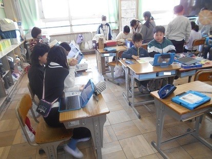 各クラス,発表の準備をしています。タブレットを使って準備している子もいます。