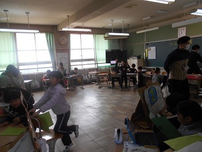 総合的な学習の時間では,発表のための制作物を作ったり,発表の練習をしたりしています。