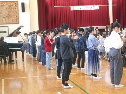 体育館で,小学校生活6年間で成長したところを音楽であらわし,ご家庭の皆様への感謝の思いを言葉にしました。