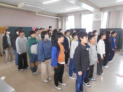 リズムをとって音楽にのりながら,歌を歌っています。