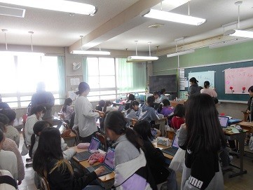 3年生の見学には,6年生の子どもたちが説明をしています。