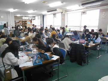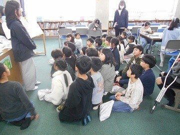 3年生に対しても,作品を見せたり,丁寧に説明をしたりしています。